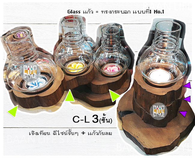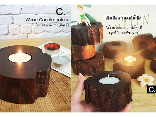 Sale!! ซื้อชิ้นเดียวก็ลด Wooden candle holder +with glass natural wood multi-function : Candle holder(A-B) / Tray(B) / Ashtray(B) เชิงเทียนไม้ / ตอไม้, ถาดไม้ ,ตอไม้ชั้นๆ นิยมตกแต่งโรงแรม,รีสอร์ท,ร้านอาหารแบบมีสไตล์ ของฝากเพื่อนชาวต่างชาติชื่นชอบค่ะ DIY ดีไอวาย ปรับใช้งานได้หลากกลาย - Candle เป็นตะเกียง-เชิงเทียน : ใช้เทียนถ้วย ขนาดมาตรฐานทั่วไป - Decor วางโต๊ะ,เคาน์เตอร์ ตกแต่งบ้าน ร้านอาหาร รีสอร์ทสวยสไตล์ธรรมชาติ - Prop เป็นฐานรองสวย โชว์สินค้า พร็อพถ่ายรูป - Tray รุ่น A เป็นถาดใส่ของได้ หรือที่เขี่ยบุหรี่ก็ได้ด้วย Ashtray ![]() ![]() CANDLE HOLDER : A ![]() A เชิงเทียน: ถาดไม้ คละทรงธรรมชาติ +แก้ว (Glass :random แก้วสุ่มแบบ) * อยากระบุแก้วหรือไม้ เขียนในช่องหมายเหตุ หรือแชทไลน์มาบอกนะคะ ถ้ามีสต็อคตัวนั้นได้ก็จะเลือกให้ค่ะ ![]() ____________________________________ B ![]() ![]() B เชิงเทียน: ตอไม้ คละทรงธรรมชาติ +แก้ว (Glass :random แก้วสุ่มแบบ) ![]() ____________________________ C ![]() C เชิงเทียน: ตอไม้เล็ก ทรงธรรมชาติ (No Glass ไม่ใช้แก้ว) ________________________________ L ![]() L - 2/-3/-5 เชิงเทียน :2ชั้น / 3ชั้น/ 5ชั้น + แก้ว (Glass :random แก้วสุ่มแบบ) ![]() ![]() ------------------------------------ - ฝีมือคนไทย ทำจากไม้จริง จึงให้รูปทรงธรรมชาติ แตกต่างกันทุกชิ้นงาน - ผิวขัดและเคลือบสีน้ำตาลดำ ( ถ้าเลอะ ให้ล้างน้ำธรรมดา ไม่แช่น้ำ และเช็ดตากลมให้แห้งสนิทค่ะ ) |